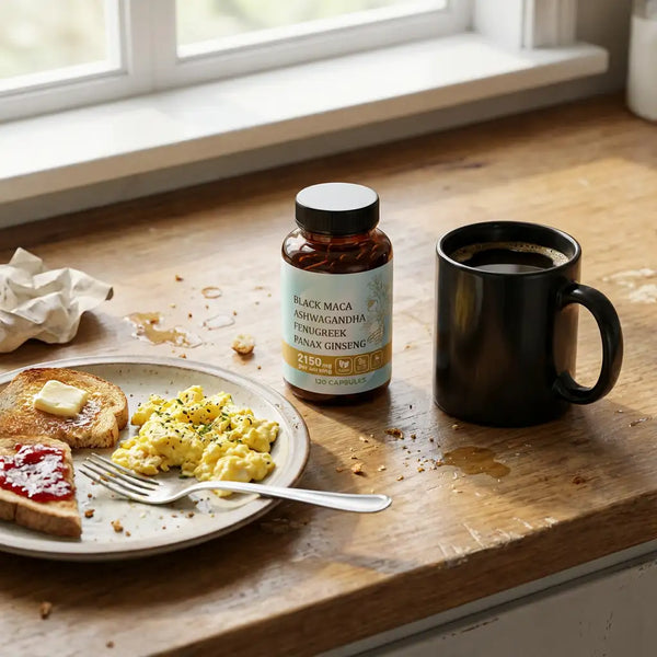 Open the bottle. That strong, earthy scent? That's the active compounds of Black Maca and Fenugreek. If your pills don't smell, they aren't working.